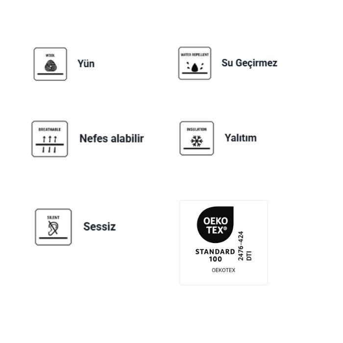 • Dolgu: %100 Polyester, Deer-Tex® Temp 80 g/m²