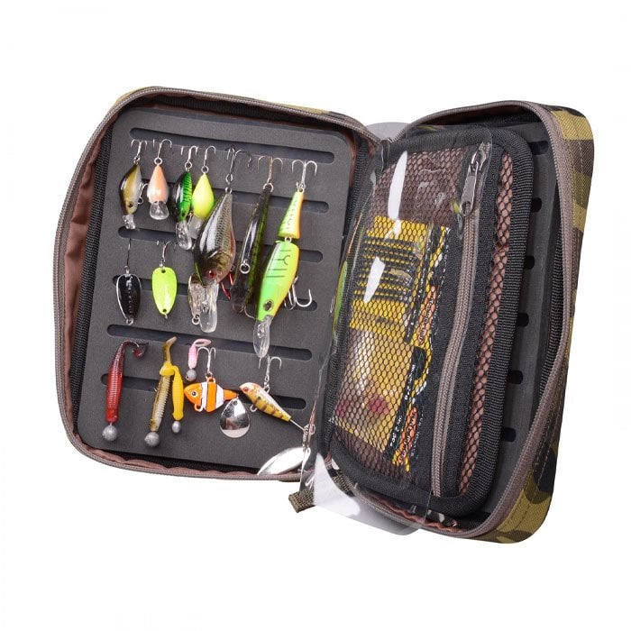 Küçük ve mikro yemleri saklamak için mükemmel taşıma çantaları. Yemler, sert kaplar, kaşıklar, eğirme yemleri ve monte edilmiş yumuşak yemler doğal olarak önceden şekillendirilmiş köpük plakalar üzerinde yerlerini bulacaktır. File cepler, liderler veya aksesuar cepleri için mükemmeldir. Kitlerin her birinde kolay asılması için bir karabina bulunur.