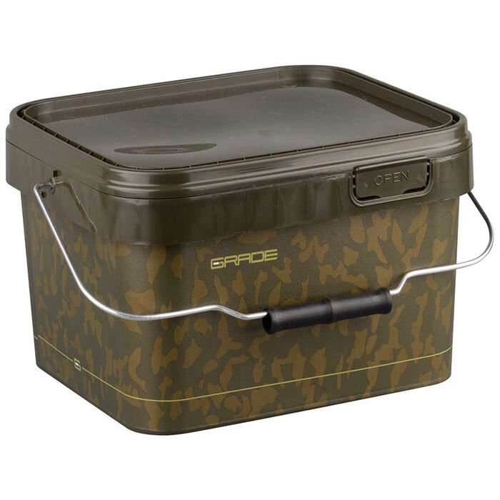 Kare şekilli ve dayanıklı malzemeden üretilmiş SPRO Grade yem kovaları kamuflaj kaplamadır. 3 farklı boy ve hacimde olan bu kovalar 5 litre, 10 litre ve 17 litre hacmine sahiptir. Yem ve aksesuarların taşınması için uygun olduğu gibi, tuttuğunuz balıkların ıslak tutulması içinde uygundur.  Kolay takılıp çıkarılabilen kapağı sayesinde taşıma rahatlığı ve içerisindeki malzemenin dökülmemesini sağlar.