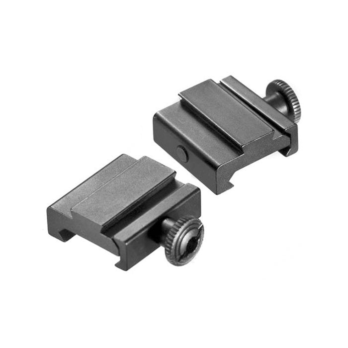 Picatinny uyumlu ateşli silahlarınıza kırlangıç ​​kuyruğu rayına dönüştürür. Bu mat siyah alüminyum iki parçalı set, tırtıklı ve oluklu kelebek vidalı iki özdeş 3 cm uzunluğunda raya sahiptir.