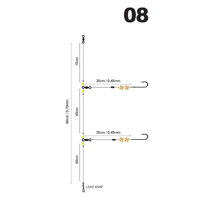 • Özel Gamakatsunun özel iğneleriyle donatılmış iki iğneli deniz takımı.