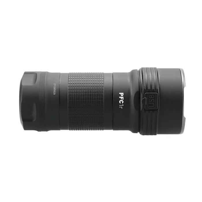 Üç LED'i ve maksimum 5000 lümen çıkışıyla şarj edilebilir PFC1r, gerçek anlamda yüksek güçlü bir el feneridir. Üç adet 21700 şarj edilebilir pille çalışan ve USB-C şarj soketiyle desteklenen bu cihaz, her köşeye ışık saçar ve size beş parlaklık seviyesi seçeneği sunar (20/250/850/2000/5000 lümen). Arka kontrollerde açma/kapama düğmesi ve anlık ışık düğmesi bulunur. Parlaklık seviyeleri ve özel modlar (flaş ve işaret) yan taraftaki anahtarla etkinleştirilir. Bir bellek ünitesi, PFC1r'nin her zaman en son kullandığınız seviyede açılmasını sağlar. Kullanılabilir pil kapasitesi %25'in altına düştüğünde bir sinyal verilir. Sağlam alüminyum muhafaza sert anodize edilmiştir ve su geçirmezdir. Naylon kılıf, üç adet 21700 şarj edilebilir Li-ion pil, şarj kablosu ve yedek conta ile birlikte gelir.